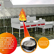 滅火劑是無毒無味的新型環保產品。滅火時滅火劑與高溫油質在化學機理反應過程中在油鍋的表面產生一層厚厚的泡沫層,覆蓋在油層上面,使油鍋火與空氣隔絕,不再燃燒,也不能復燃。快速的達到滅火的效果。